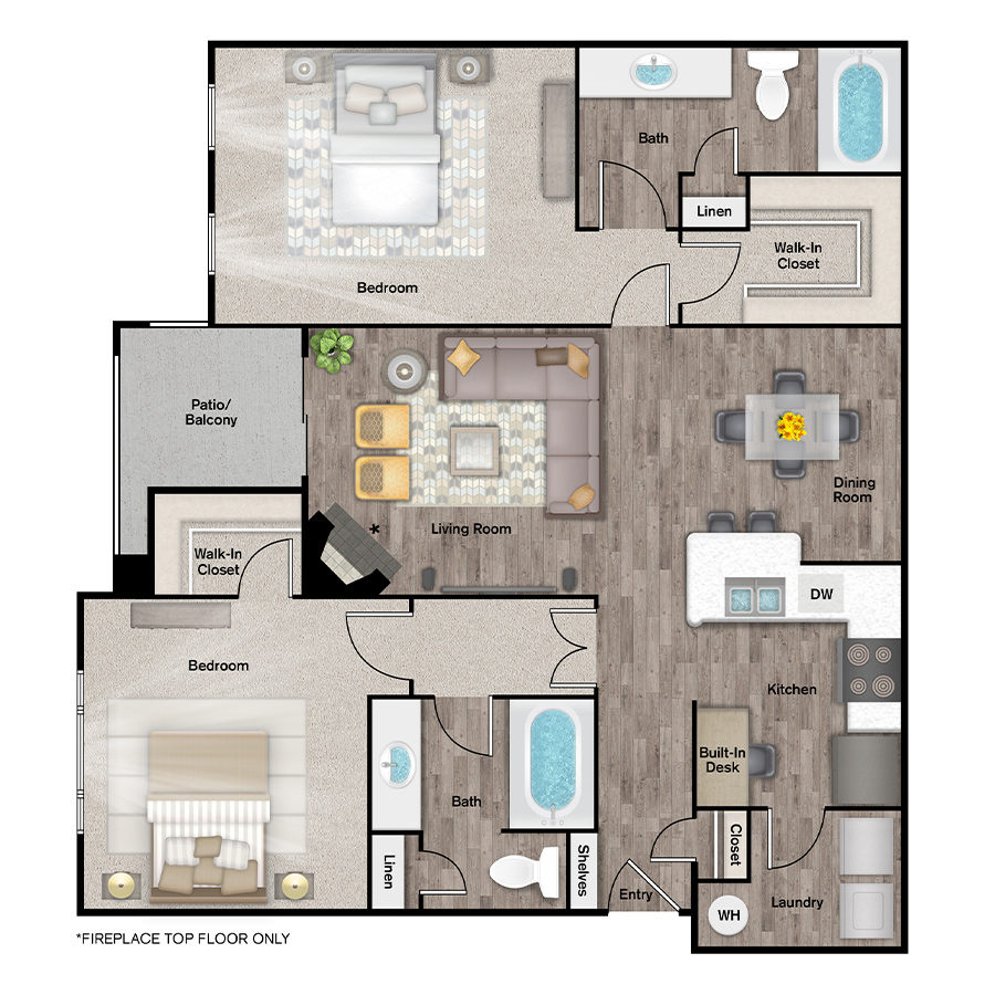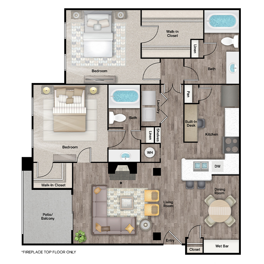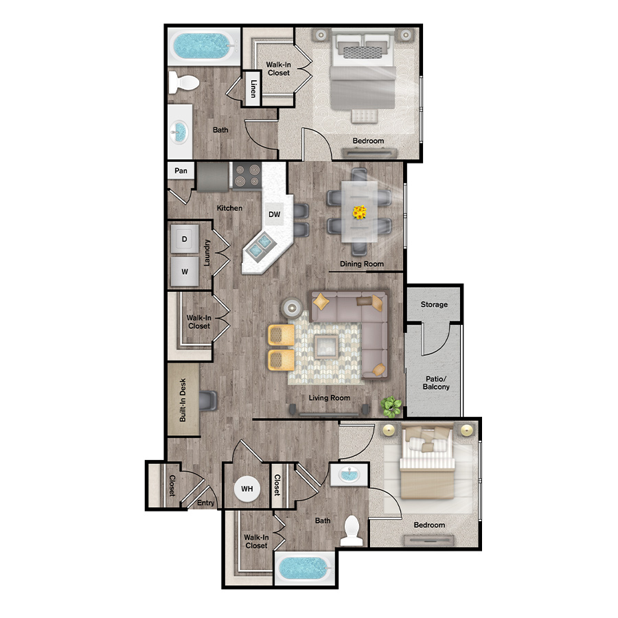 Rendering of the B2W floor plan with 2 bedroom[s] and 2 bathroom[s] at IMT Cool Springs